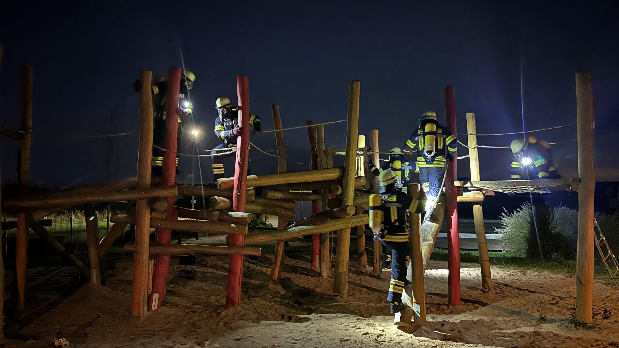 Für die Belastungsübung wählten wir diesmal einen Spielplatz als Übungsort. Dort nutzten wir die vorhandenen Klettergerüste, um unsere körperliche Ausdauer und Koordination unter Atemschutz zu testen. Die abwechslungsreichen Bewegungsabläufe sorgten dafür, dass jeder Teilnehmer sowohl körperlich als auch geistig gefordert wurde.