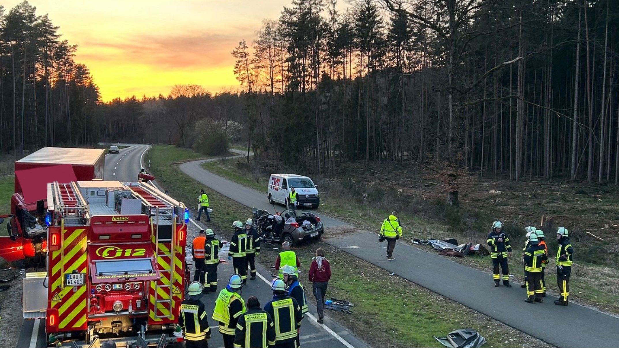 Als die ersten Einsatzkräfte der Feuerwehr Winkelhaid an der Einsatzstelle eintrafen, fanden sie einen stark deformierten LKW und PKW vor. Beide Fahrzeuge waren schwer- bis teilweise komplett beschädigt worden. Ersthelfer und Polizisten versorgten den Fahrer des Lkws, welcher zuvor durch Ersthelfer aus dem LKW befreit wurde. Kameraden der Feuerwehr Winkelhaid unterstützten die Ersthelfer bis zum Eintreffen des Rettungsdienstes. Der Fahrer musste mit schweren Verletzungen in ein nahe liegendes Krankenhauses gebracht werden. Für den Fahrer des PKWs kam jede Hilfe zu spät. Der im Einsatz befindliche Notarzt konnte nur noch den Tod des Fahrers feststellen.