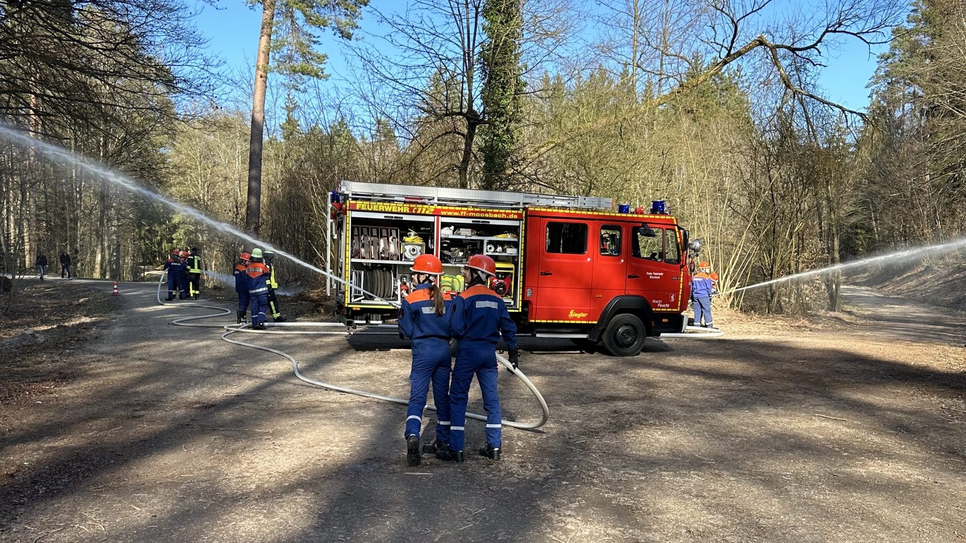 Am Samstag, den 09.03.2024 setzten wir die einzelnen Elemente endlich zusammen und die neun Anwärter übten als Löschgruppe den Aufbau eines Löschangriffes vom Absitzen vom Fahrzeug bis zur Vornahme von drei Strahlrohren zur Brandbekämpfung. Dank der freundlichen mithilfe einiger Kameraden, konnte unsere Jugend dies am örtlichen Weiher einmal komplett üben und das Theorie-Wissen weiter in der Praxis vertiefen. Dieser standardisierte Aufbau bildet später die Grundlage für jede Brandbekämpfung und muss von jedem aktiven Feuerwehrdienstleistenden im Schlaf beherrscht werden.