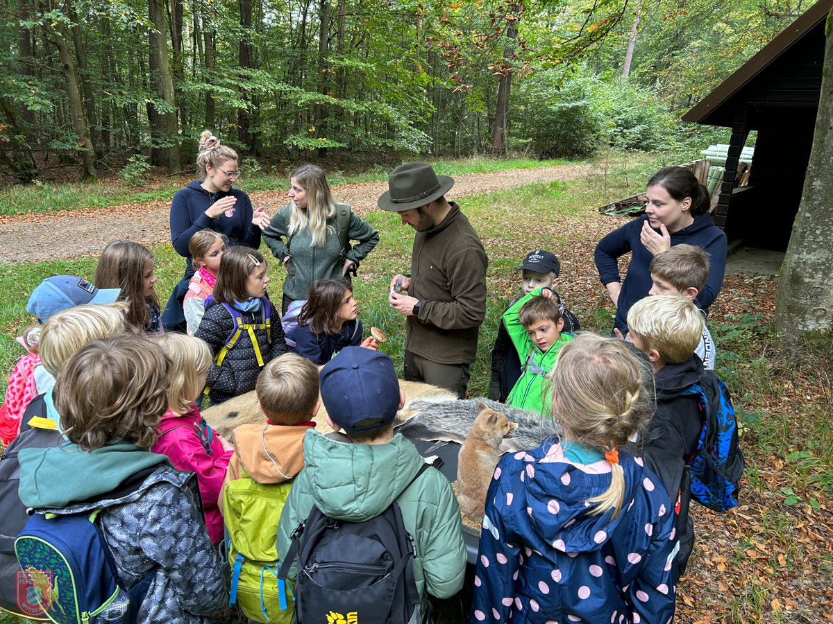 Hierbei hatten wir tatkräftige Unterstützung von zwei Jägern. Diese hatten für unsere Kinder eine tolle Schnitzeljagt vorbereitet, bei der es die ein oder andere Aufgabe zu lösen gab. Außerdem bekamen wir einen kleinen Einblick in die Arbeit eines Jägers / einer Jägerin und konnten all unsere Fragen stellen – diese wurden natürlich fachkundig beantwortet.