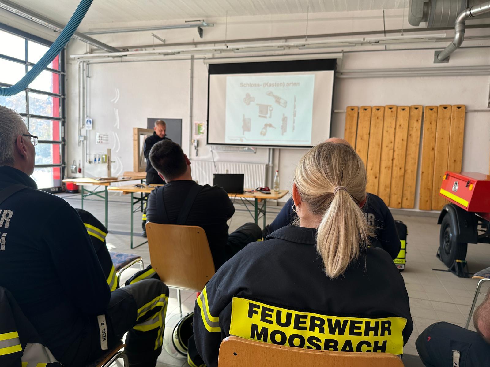 Neun Kameradinnen und Kameraden der Freiwilligen Feuerwehr Moosbach nahmen am Samstag, den 4. November an einem Lehrgang zum Thema Türöffnung teil. Nach einer theoretischen Einführung zu den Themen Rechtliches, Gefahren und Technik hatten die Teilnehmer noch reichlich Zeit, um unter fachkundiger Anleitung verschiedene Formen des möglichst zerstörungsfreien Schlossknackens zu üben. Dabei zeigte sich aber auch deutlich, welchen Herausforderungen sich die Retter heutzutage stellen müssen: Immer ausgefeilterer Einbruchschutz bremst natürlich auch die Blaulicht-„Panzerknacker“ aus. Eines aber haben die Feuerwehrleute ganz gewiss als Lehre mit nach Hause genommen: Eine gekippte Balkon- oder Terrassentür ist für einen Einbrecher eine offene Tür.