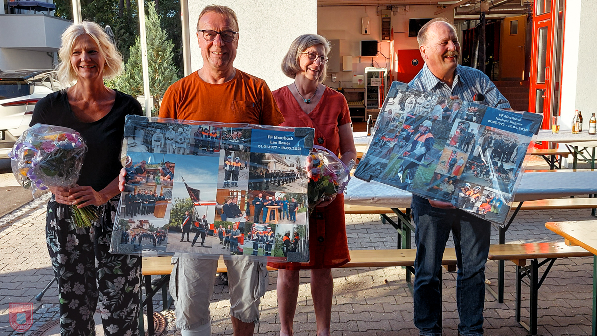 Leo Bauer gehörte der Wehr vom 01.01.1977 bis zum 18.05.2023 und Norbert Bogner sen. vom 01.05.1972 bis zum 14.04.2020 an, dessen Verabschiedung durch Corona nicht eher möglich war. Beide trugen nicht nur durch ihre zahlreichen Ämter innerhalb der Wehr, sondern vor Allem durch ihre liebenswerte, kameradschaftliche und stets hilfsbereite Art in besonderem Maße zur Kameradschaft und zur Leistungsfähigkeit der Freiwilligen Feuerwehr Moosbach bei.