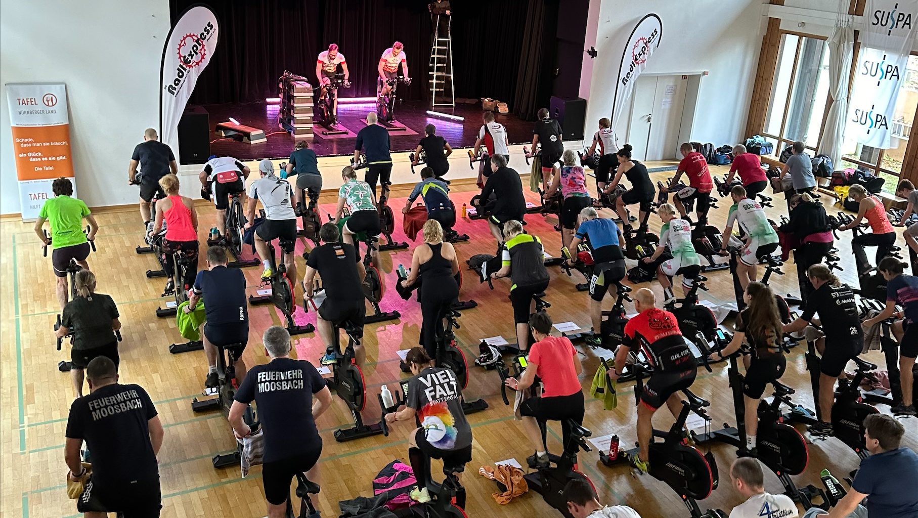 Moosbach – Am Samstag, den 17. Februar, fiel um 10 Uhr bereits zum 14. Mal der Startschuss für den Indoorcycling-Marathon des Radl-Express Feucht in der Moosbacher Bürgerhalle.