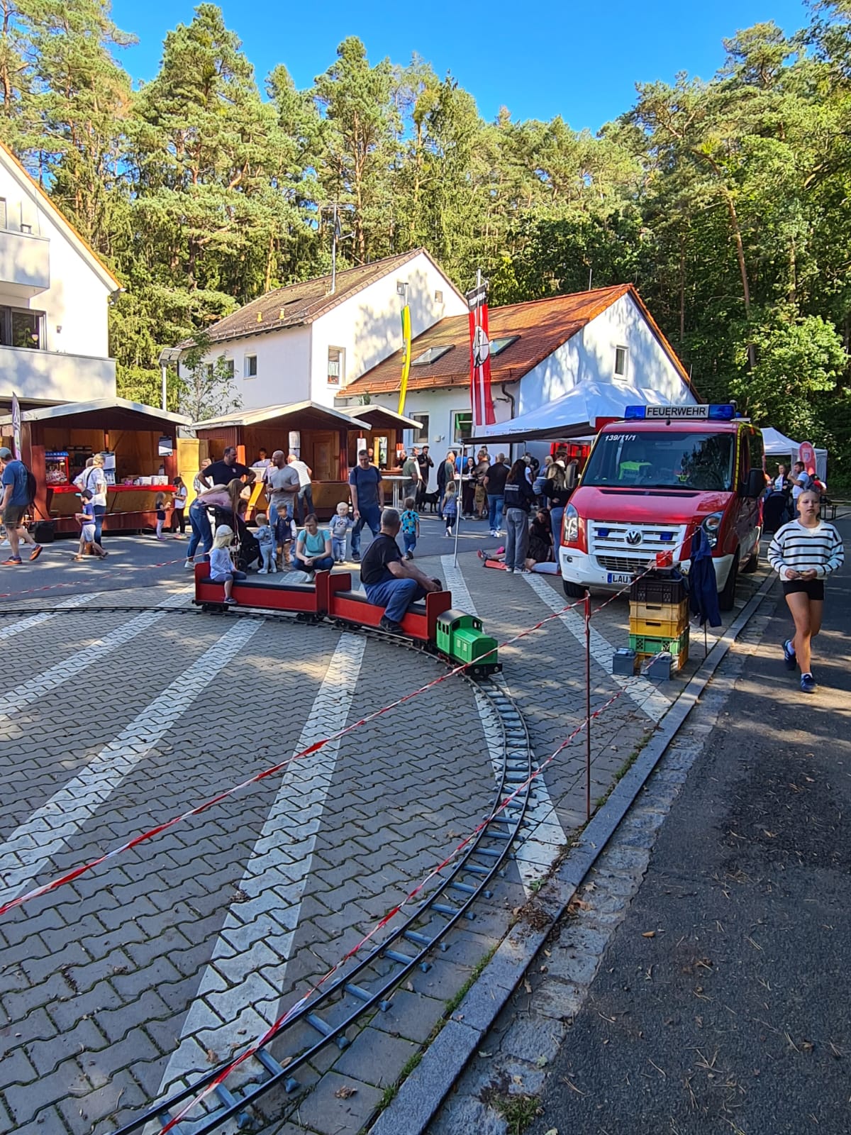 Für die jüngsten Besucher war auch in diesem Jahr wieder einiges geboten. Neben der beliebten Hüpfburg gab es erstmals die Brandmeister Challenge, die aus sechs spannenden Spielen bestand. Mit viel Eifer und Freude meisterten die Kinder und Jugendlichen die einzelnen Stationen – als Anerkennung erhielten alle erfolgreichen Teilnehmer am Ende eine kleine Belohnung. Ebenfalls neu war eine Süßigkeitenbude, die von der Kinderfeuerwehr organisiert und betreut wurde. Auch die eigens aufgebaute Eisenbahn für die Kleinsten sorgte für große Begeisterung und wurde im Laufe des Tages ausgiebig genutzt.